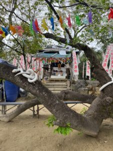 目の前の木は桜です。今回は少し遅かったので、また来年桜の季節にお参りしたいと思います。