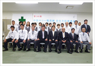毎年4月に、当期の経営方針、支店・課・個人の計画を発表しあう場を設けて、全社の意思統一をはかっています。